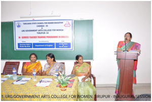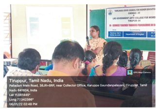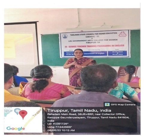 Tamilnadu State Council for Higher Education organized an in-service Teacher Training Programme for college Teachers of Coimbatore zone on 5th& 6th May 2022, held at LRG Government Arts College for Women, Tirupur. The training was organised by the Department of English 62 participants from various colleges took part in the programme.