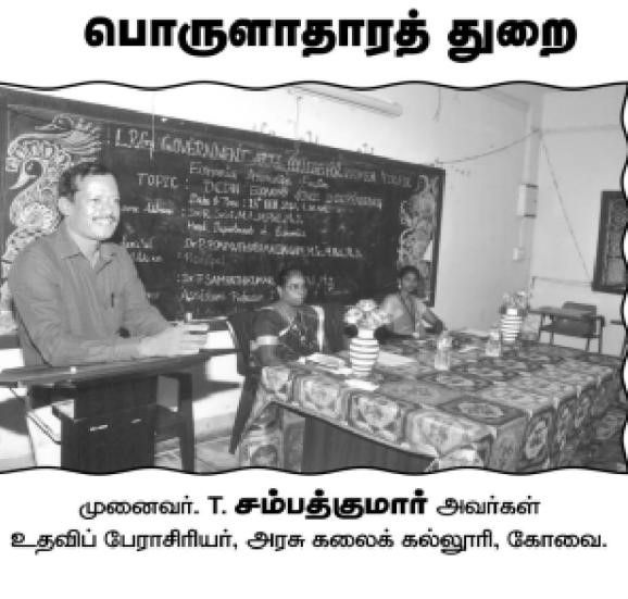Dr.T.SAMPATHKUMAR.,M.A,M.Phil.,Ph.D., ASSISTANT PROFESSOR, DEPARTMENT OF ECONOMICS, GOVRNMENT ARTS COLLEGE,COIMBATORE |