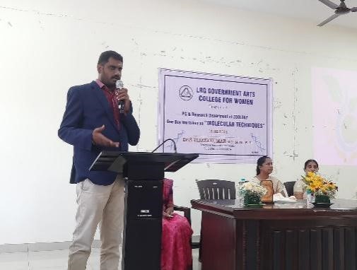 The One-day Workshop on Molecular Techniques Hosted by Zoology department Invited Dr. Vijaykumar M.S., M.Phil., PhD. The Director & Research Coordinator from VJ Biotech, Coimbatore to conduct the program at 08.02.2024. The objective of a workshop is to provide them with hands on experience and practical insights into the scientific techniques, tools and procedures used in the clinical lab techniques, Biotechnology, molecular biology and immunology.