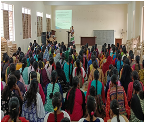 All the Freshers of PG courses were assembled in the AV Hall on 12th September and a session was conducted on 1. Library Usage 2.Students Behavior in Library 3.Book Lending schedule Along with 4.NLIST, 5.NDLI, 6.E-PG Pathshala,7. Shodh ganga, 8.DOAB, 9.DOAJ and several Open Access Portals.