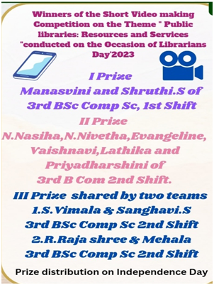 Every Year Librarian Day is celebrated with competitions to encourage students thinking and presentation skills. The Librarian Day competition was short Video Making.