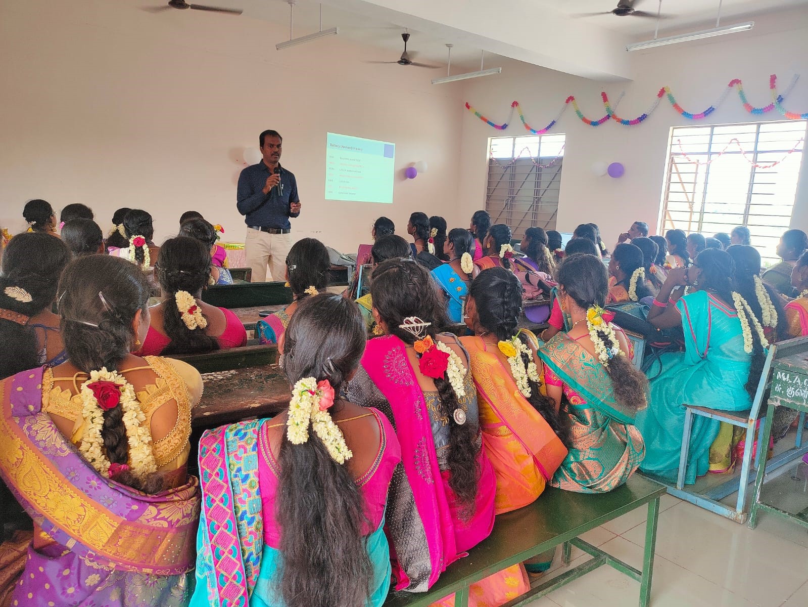 The Association meeting for the academic year 2021-2022 was held on April 20, 2022. The Chief Guest, Dr. N. Sivakumar, Assistant Professor in the Department of Physics at Chikkiah Naicker College, Erode, delivered a lecture on “Importance of Nanostructured Lithium-Ion Batteries for Present and Future Generations.” In his presentation, Dr. Sivakumar provided insights into the evolution of batteries, including their structures and types in the modern world. He discussed their current applications and highlighted how advancements in battery technology, particularly nanostructured lithium-ion batteries, are poised to revolutionize future generations.